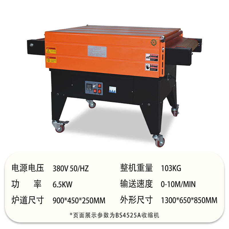 • 快速加熱與停機(jī)響應(yīng):噴氣式熱收縮機(jī)可以快速啟動并達(dá)到所需的噴氣溫度,在包裝任務(wù)完成后也能迅速停止加熱,減少了待機(jī)時(shí)的能源消耗。而一些傳統(tǒng)熱收縮機(jī)的加熱元件升溫速度較慢,且在停機(jī)后仍會有較長時(shí)間的余熱散失,浪費(fèi)能源。