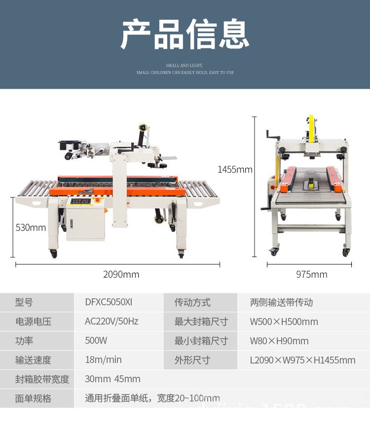 - 優(yōu)質(zhì)封箱效果:對于封箱而言,能夠確保膠帶粘貼得平整、緊密。它通過控制膠帶的張力和粘貼的壓力,使膠帶均勻地貼合在紙箱封口處,避免出現(xiàn)膠帶褶皺、粘貼不牢等情況。像在運(yùn)輸過程中,如果封箱不牢固,紙箱可能會散開,導(dǎo)致產(chǎn)品受損,而一體機(jī)良好的封箱效果可以有效防止這種情況發(fā)生。