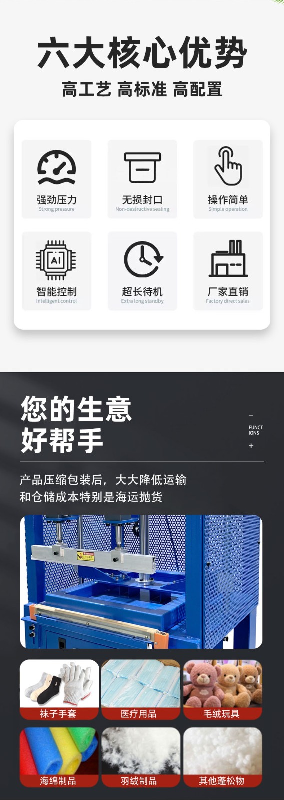 壓縮封口包裝機(jī)的封口效果會(huì)受到多種因素的影響,以下是一些主要因素: