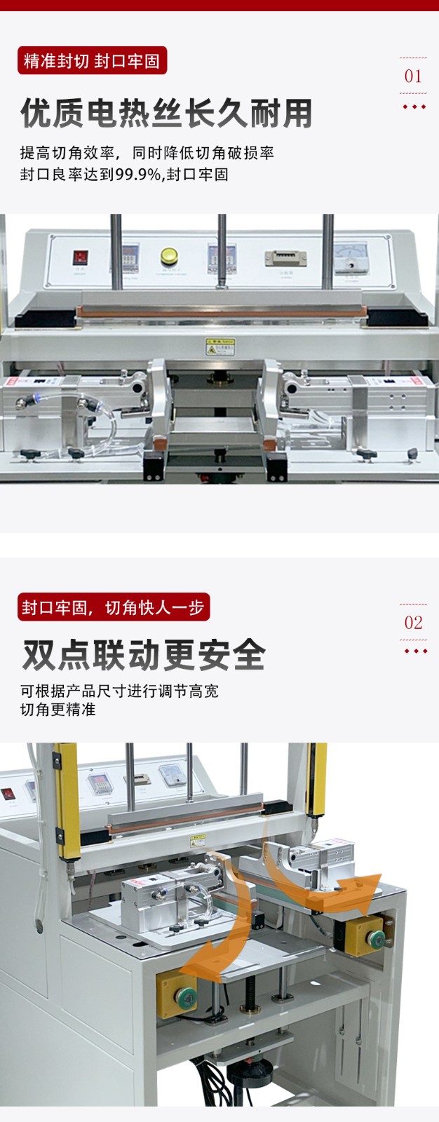 高效快捷:封口速度比傳統(tǒng)設備快,部分機型每分鐘可完成 50 次精準封口,能有效提高生產(chǎn)效率。 操作簡便:通常采用一鍵啟動或腳踏開關控制,操作人員只需簡單培訓即可上手操作。 封口質(zhì)量好:采用雙面加熱封口,壓合平整美觀,封口牢固,且封口長度、寬度等參數(shù)可根據(jù)需求調(diào)整。 適應性強:可適用于 PVC、PP、POF 等多種材質(zhì)的收縮膜,還能根據(jù)不同產(chǎn)品規(guī)格進行調(diào)整,兼容多種尺寸的包裝材料。 安全性高:部分機型配備急停按鈕等安全裝置,且外觀設計圓潤,無棱角,可減少操作人員受傷的風險。 應用場景 廣泛應用于食品、化工、電子、醫(yī)藥、日化等行業(yè),可用于對各種產(chǎn)品的包裝材料進行封口和切角處理,如食品包裝袋、日化用品包裝袋、電子產(chǎn)品包裝盒等的封裝。 代表產(chǎn)品 如中堡智能科技實業(yè)有限公司的HX-4018 智能氣動封口切角機、東莞博冠包裝實業(yè)有限公司的氣動封口切角機等,均具有運行穩(wěn)定、包裝速度快、多規(guī)格適配等特點。