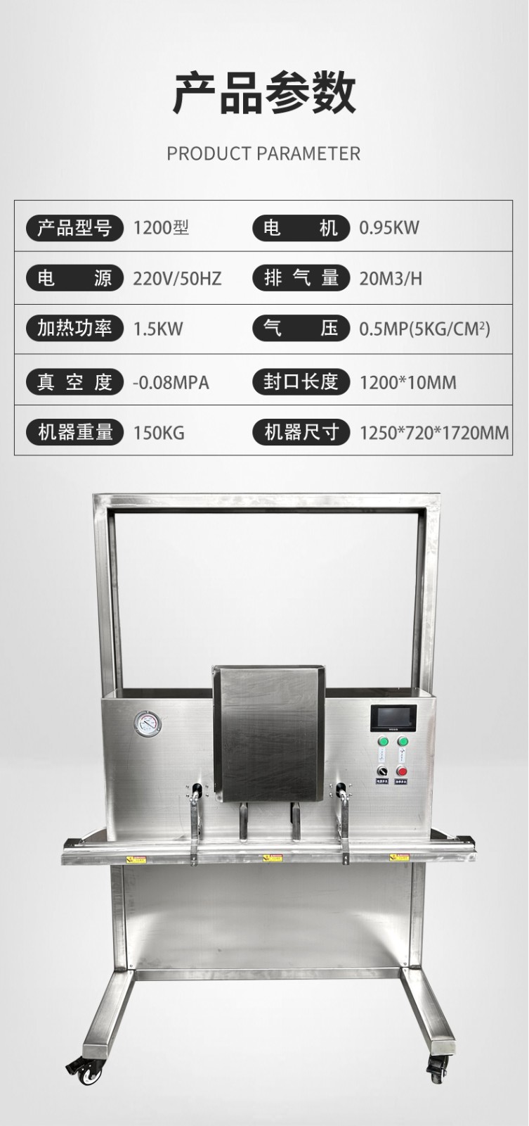 可定制與多模式適配不同尺寸:部分機(jī)型支持封口規(guī)格定制,封口長(zhǎng)度可達(dá)到 800mm、1000mm 甚至 1200mm 等,適配不同寬度的包裝袋。同時(shí),部分先進(jìn)機(jī)型預(yù)設(shè)多組工作模式,可快速切換真空、充氣、封口等流程,適配從小袋糕點(diǎn)到大袋五金模具等不同尺寸、類(lèi)型產(chǎn)品的包裝需求。
