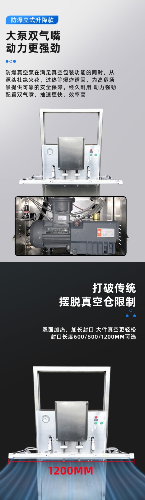 立式防爆真空包裝機(jī)的防爆配置集中在電氣、動(dòng)力及密封過(guò)濾等關(guān)鍵部件,以此適配易燃易爆的特殊工況,其適用工廠也多為存在爆炸隱患的化工、醫(yī)藥等領(lǐng)域,具體如下: