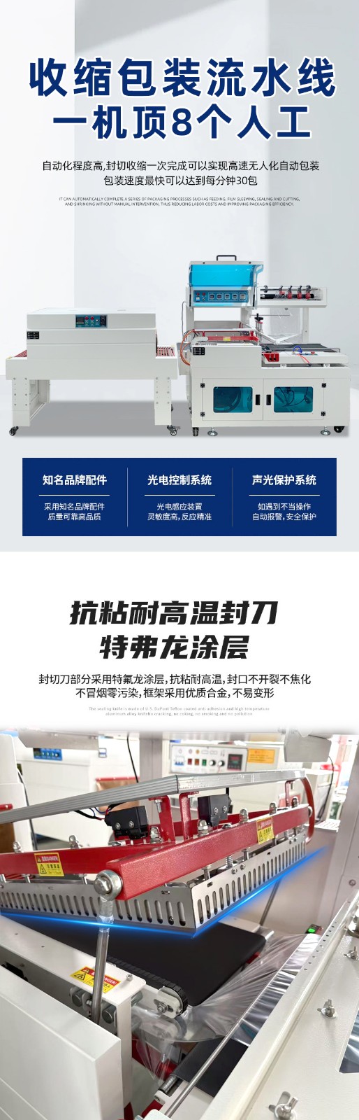 全自動封切熱收縮包裝機穩(wěn)定高效實現(xiàn)連續(xù)不斷的流水線作業(yè),無需人工干預(yù)
