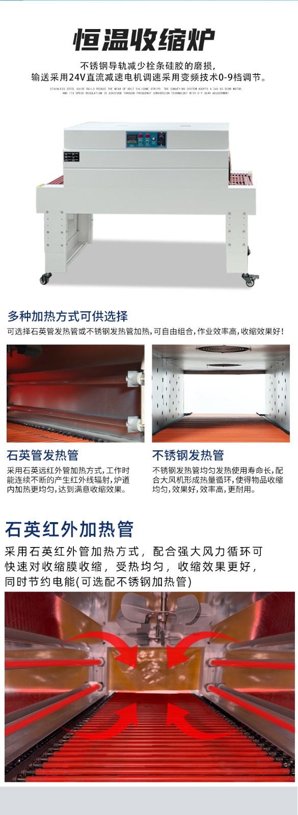 • 溫度控制精確:通常采用數(shù)顯溫控儀和進口熱敏感應(yīng)控制,溫度可在 0-300℃范圍內(nèi)調(diào)節(jié),溫度控制精度可達 ±2℃,確保熱收縮效果穩(wěn)定。