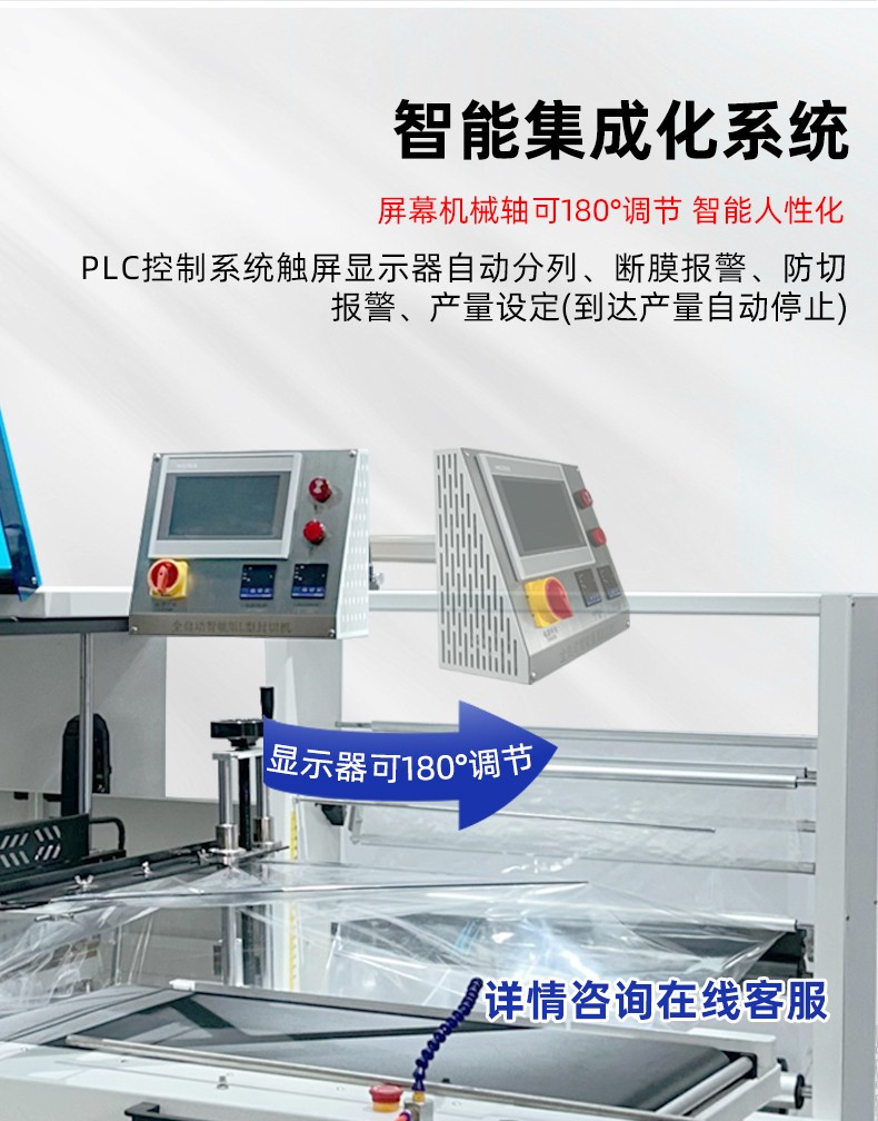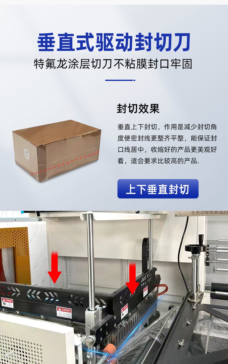 封口效果好:封口部分為上下垂直式驅(qū)動,封口接觸面均勻,可克服傳統(tǒng) “L” 型封切機的折皺和封口線位置不準確問題。