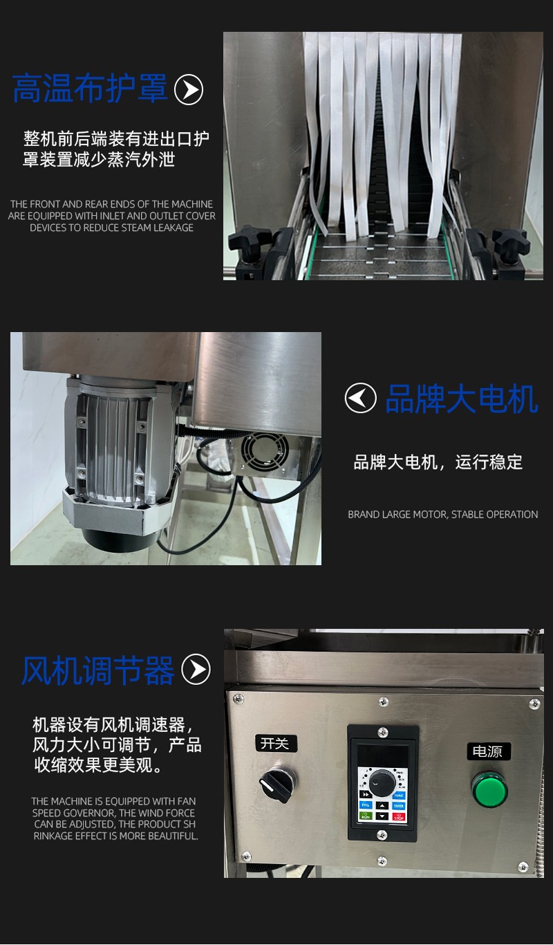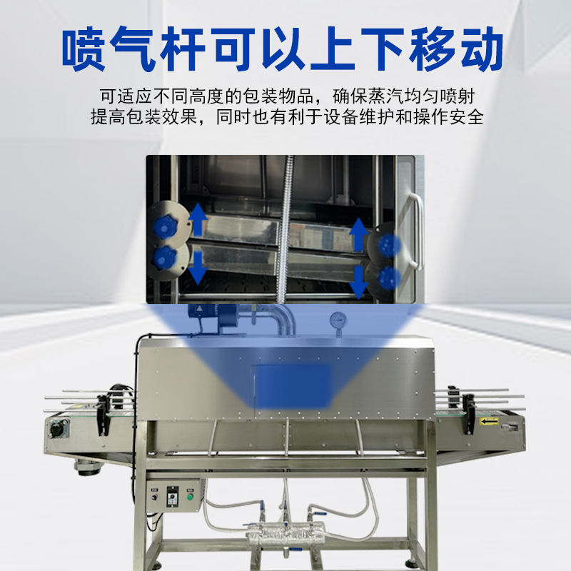 - 收縮通道:內(nèi)部設(shè)有蒸汽噴射孔或噴嘴,通道長(zhǎng)度與寬度根據(jù)產(chǎn)品尺寸可調(diào),以確保蒸汽均勻覆蓋。