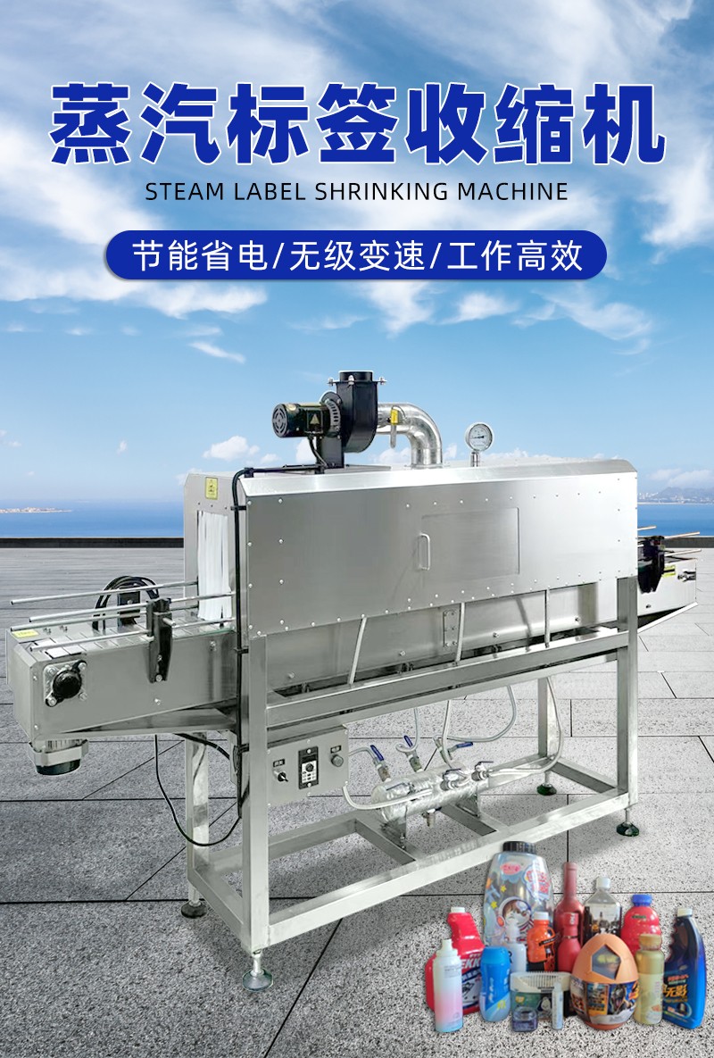 在收縮效果上,熱風(fēng)收縮受限于熱風(fēng)流動(dòng)的不均勻性,容易出現(xiàn)局部溫度過(guò)高或過(guò)低的情況,導(dǎo)致膜材收縮后表面產(chǎn)生褶皺、氣泡,或邊角處收縮不緊實(shí),影響包裝美觀度;而蒸汽具有良好的滲透性和擴(kuò)散性,能夠均勻包裹產(chǎn)品和膜材的每一個(gè)部位,使膜材受熱同步且均勻,收縮后能緊密貼合產(chǎn)品表面,無(wú)論是規(guī)則的瓶裝,還是不規(guī)則的異形件,都能實(shí)現(xiàn)平整光滑的包裝效果,大幅降低次品率。