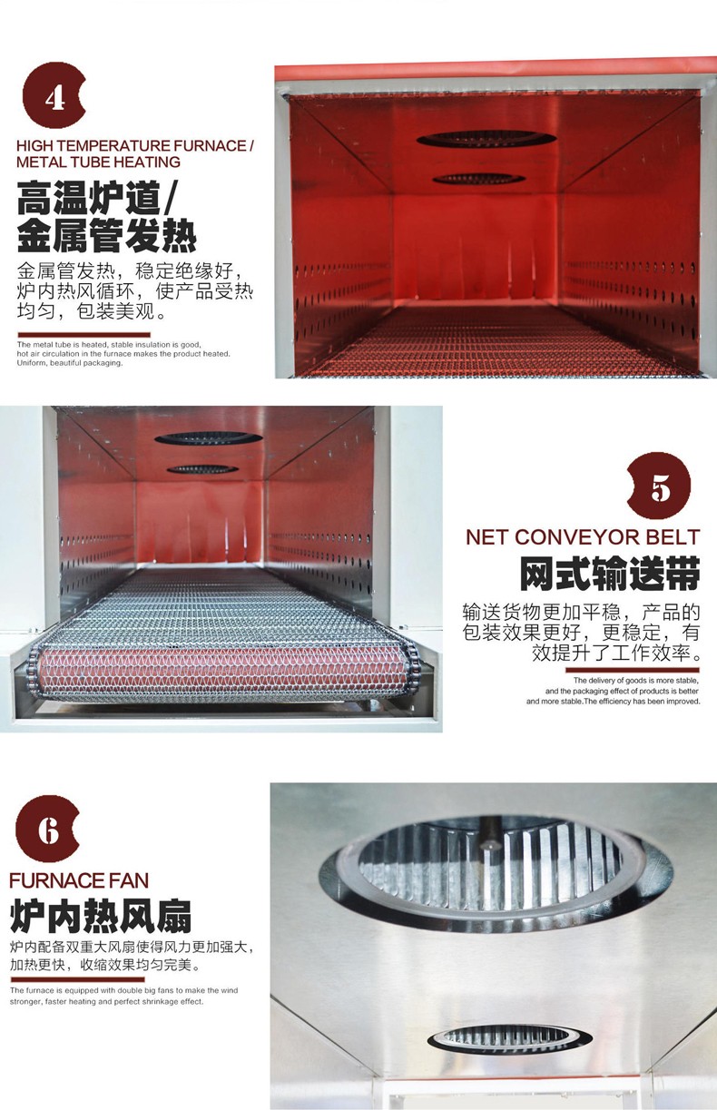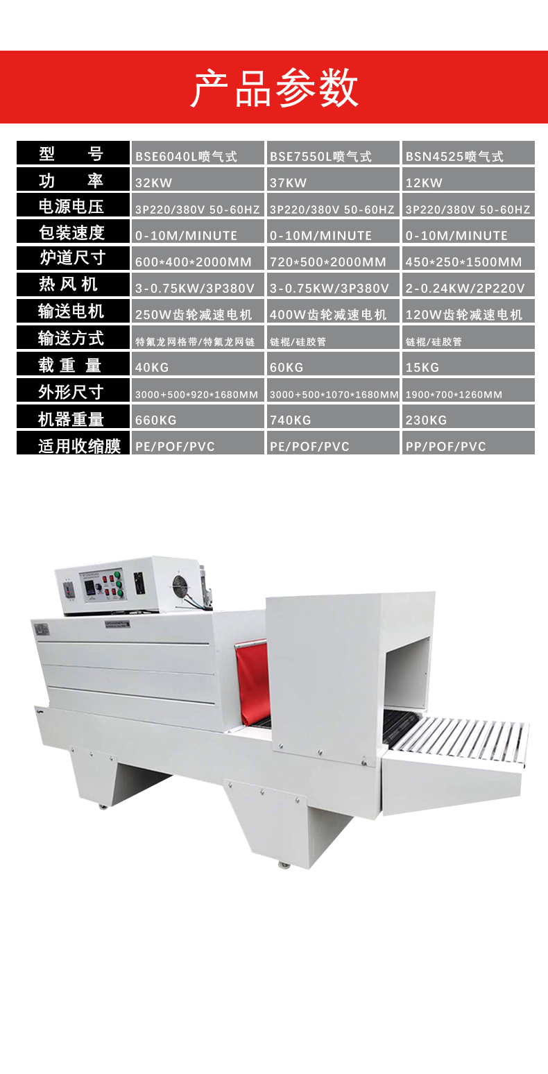 - 適用范圍廣:可以用于包裝各種形狀、尺寸和材質(zhì)的產(chǎn)品。無(wú)論是規(guī)則形狀的長(zhǎng)方體、圓柱體產(chǎn)品,還是不規(guī)則形狀的產(chǎn)品,都可以通過(guò)調(diào)整噴氣口的位置和角度、輸送速度等參數(shù)來(lái)實(shí)現(xiàn)良好的收縮包裝。它適用于食品、飲料、日用品、化妝品、五金電器等眾多行業(yè)。