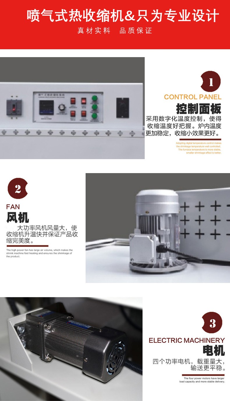 - 高效節(jié)能:通過(guò)合理的加熱系統(tǒng)設(shè)計(jì)和保溫隔熱措施,噴氣式熱收縮機(jī)在保證包裝效果的同時(shí),能夠有效利用能源。與一些傳統(tǒng)的熱收縮包裝設(shè)備相比,它的加熱速度更快,熱量散失更少,從而降低了能源消耗和生產(chǎn)成本。