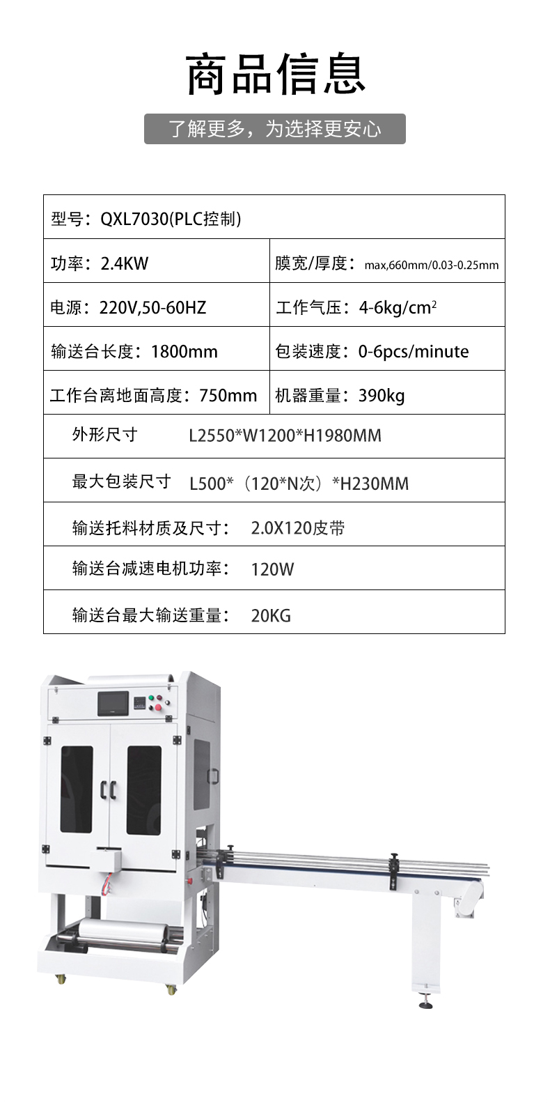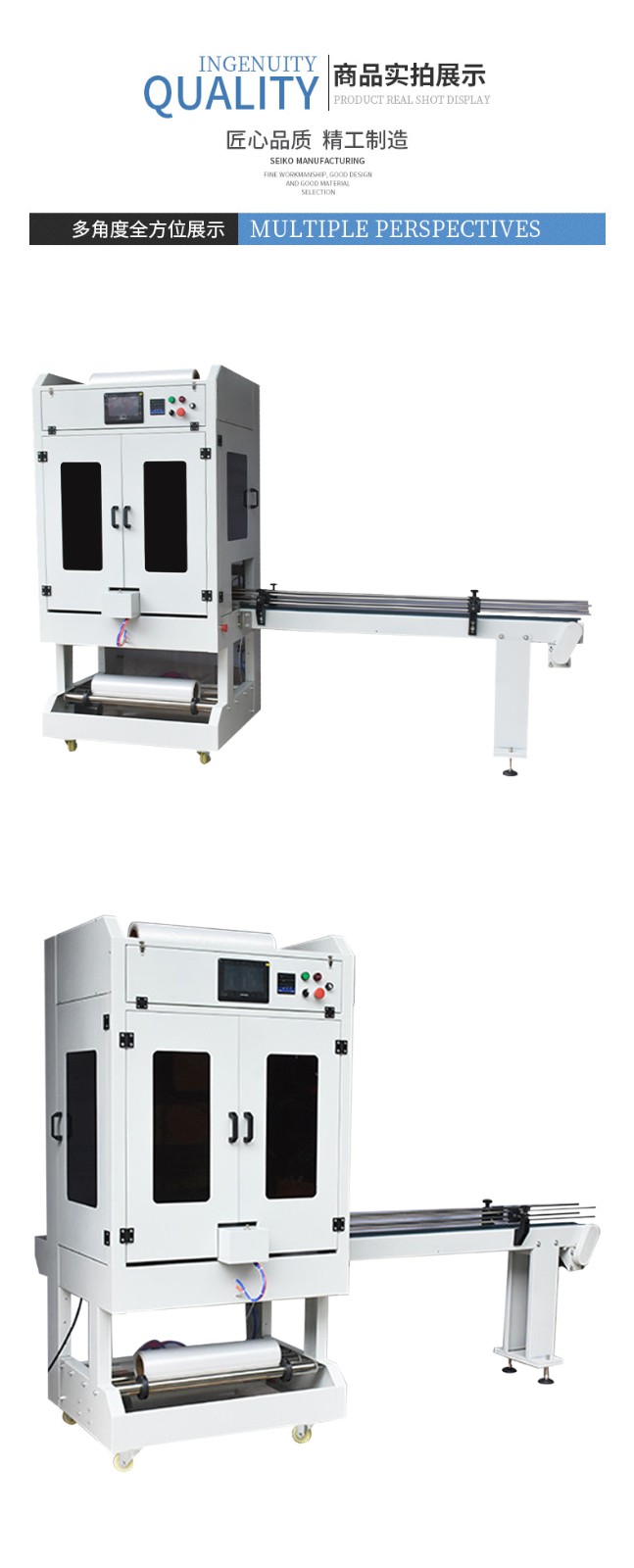 - 定位精準:在套膜過程中,產(chǎn)品的定位準確。無論是通過光電傳感器還是機械定位裝置,都能確保產(chǎn)品在輸送帶上準確地進入套膜區(qū)域,使薄膜能夠準確地圍繞產(chǎn)品進行包裹,減少了因定位不準而導(dǎo)致的套膜失誤。
