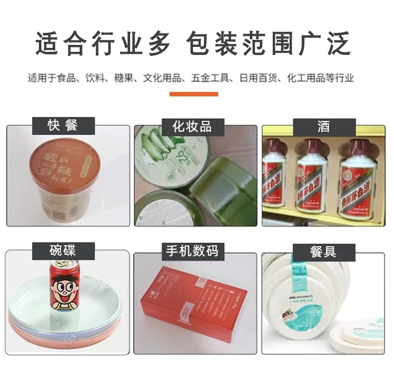 - 在食品、飲料、醫(yī)藥、日化、電子、五金等眾多行業(yè)都有應(yīng)用。在食品行業(yè),用于包裝面包、餅干、肉類(lèi)等產(chǎn)品;在飲料行業(yè),對(duì)瓶裝飲料、罐裝飲料進(jìn)行包裝;在醫(yī)藥行業(yè),包裝藥品、醫(yī)療器械等;在日化行業(yè),對(duì)洗發(fā)水、沐浴露等產(chǎn)品進(jìn)行包裝;在電子行業(yè),包裝手機(jī)配件、電腦周邊產(chǎn)品等;在五金行業(yè),包裝工具、小五金零件等。