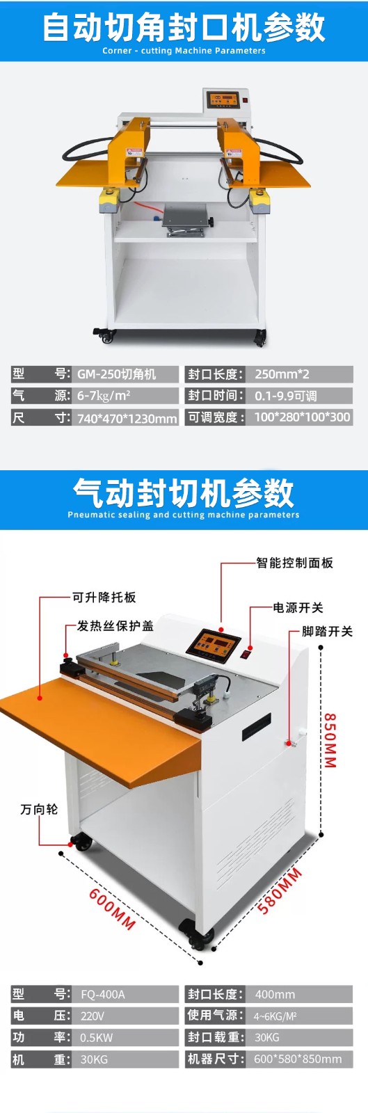 - 切角原理:在封口完成后,利用安裝在特定位置的切刀,通過(guò)氣動(dòng)驅(qū)動(dòng)裝置帶動(dòng)切刀運(yùn)動(dòng),按照預(yù)設(shè)的角度和尺寸對(duì)封口后的薄膜袋角進(jìn)行切割,切除多余的薄膜邊角,使包裝外形更加美觀、規(guī)整。