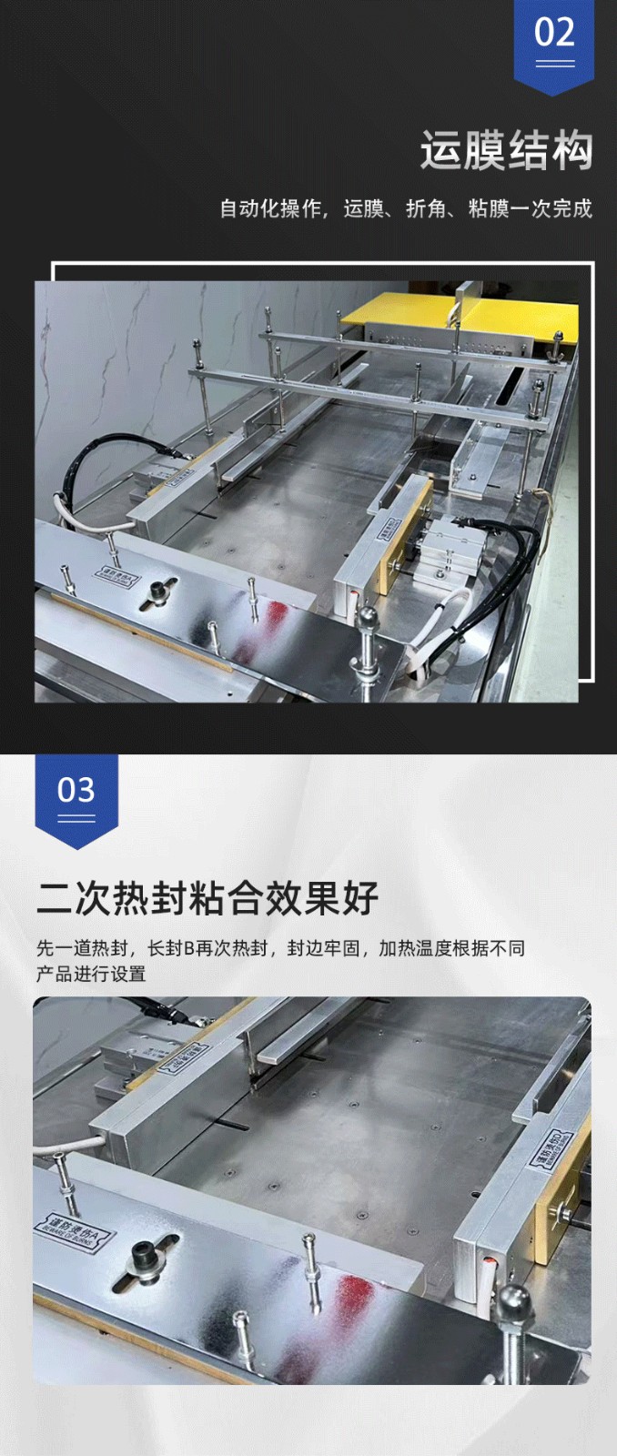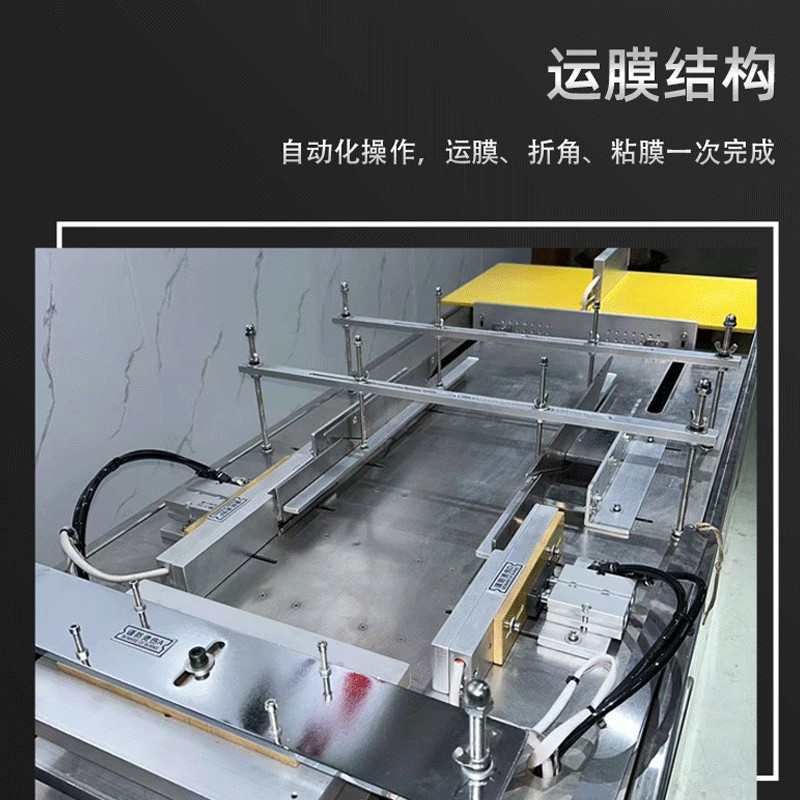 設(shè)備通過 “膜料預(yù)處理→人工上料定位→三維裹膜成型→熱封切邊→折邊定型→成品輸出” 的流程,實現(xiàn)產(chǎn)品的立體包裝,具體步驟拆解如下: