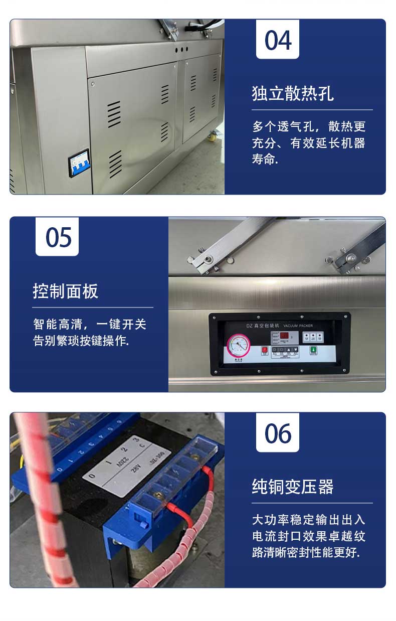 - 真空度高:配置大功率真空泵,可使包裝袋在較短時(shí)間內(nèi)獲得較高的真空度,有效延長(zhǎng)產(chǎn)品的儲(chǔ)存或保鮮期限。
